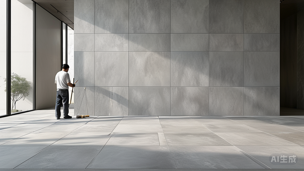 极简主义设计风格持续风靡,如何通过大规格哑光砖打造无缝空间感?极简主义的精髓在于“少即是多”,而空间的无缝感是实现这一理念的关键。大规格哑光砖,正是塑造这种流动、纯净空间的理想材料。 大规格砖本身减少了接缝数量,视觉上更具整体性。当砖面规格突破常规,延伸至800x2600mm或更大,地面与墙面的分割感便自然弱化。选择同一色系、同一规格的哑光砖通铺地面,并延伸至部分墙面,能有效模糊边界,让空间显得开阔而统一。 哑光质感的选择至关重要。它柔和、低调,避免光反射造成的视觉干扰,让注意力回归空间本身。其温润的肤感纹理,为极简空间注入静谧与温度,避免冰冷感。