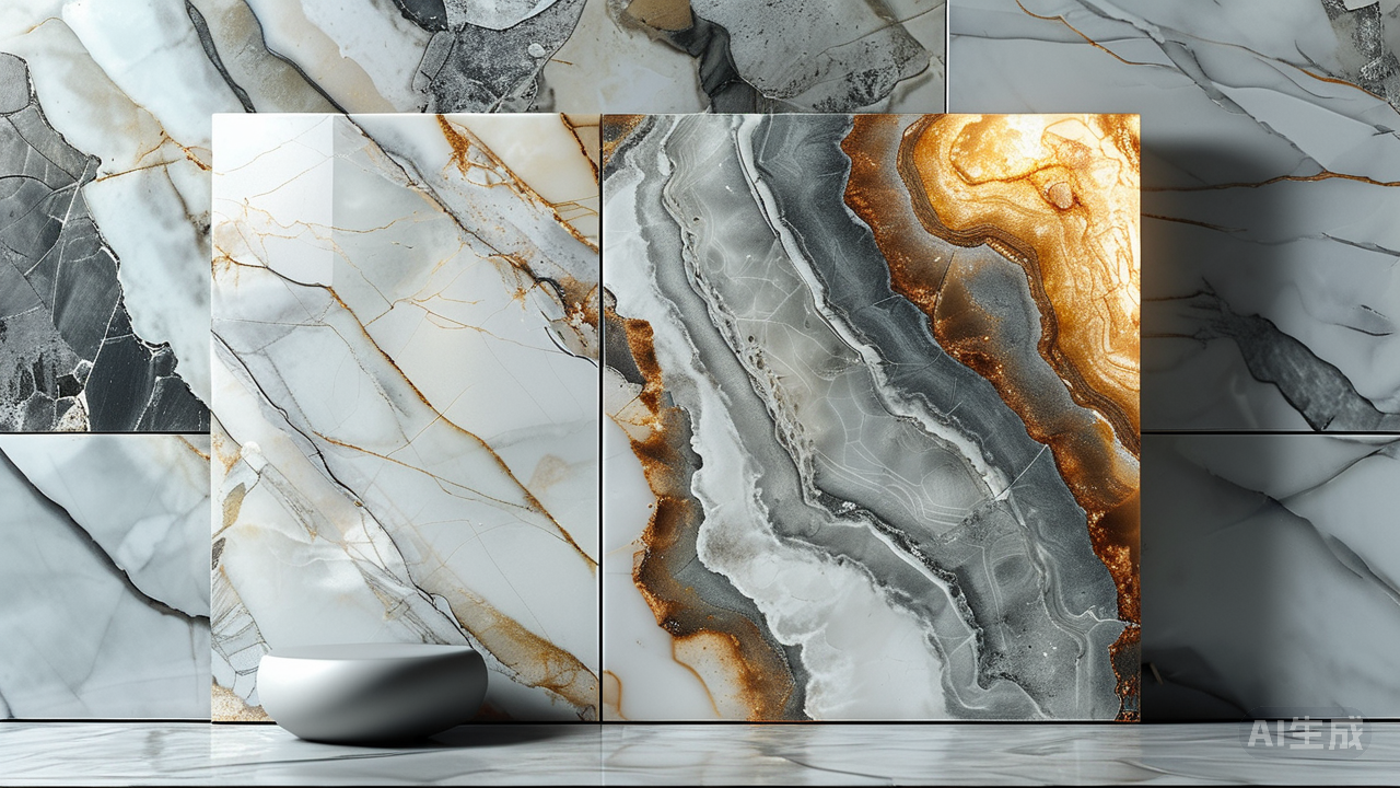 第一阶段:惟妙惟肖的“模仿者” 大理石瓷砖的起点,是对天然石材的致敬与复刻。早期的技术聚焦于如何无限逼近真石的质感。喷墨打印技术的革新是关键转折,它使瓷砖表面得以精准再现卡拉拉白、劳伦特黑等名贵石材的每一处细微脉络、色彩过渡与晶体光泽。此阶段的目标是“以假乱真”,追求在视觉与触感上消除与天然大理石的界限,满足了市场对经典奢华的广泛需求,让高贵石材的美学得以民主化地进入寻常空间。