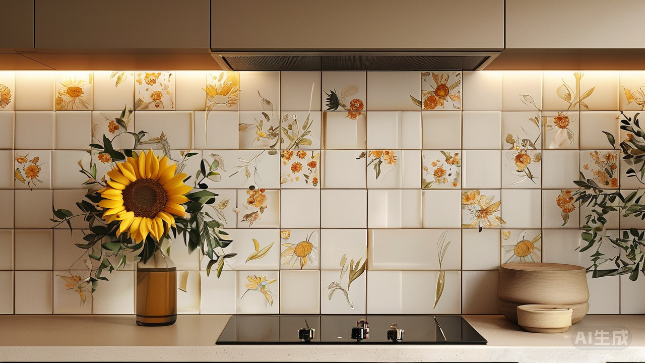 墙面与厨卫空间,则是暖黄色调瓷砖的舞台。这里的“黄”,绝非明晃晃的亮黄,而是介于赭石与淡蜜色之间,像是饱吸了夕阳的余温。可以选用尺寸不一的长方形瓷砖进行工字铺贴,或是搭配少许手绘的向日葵、橄榄叶图案的花砖作为点缀,镶嵌在厨房的防溅墙或浴室镜框周围。瓷砖表面最好带有哑光或柔光的质感,避免过于光洁的釉面带来的现代感。当灯光或自然光落在上面,整个空间便氤氲开一层蜂蜜般的光晕,柔和、静谧,充满了被时光打磨过的温润感。