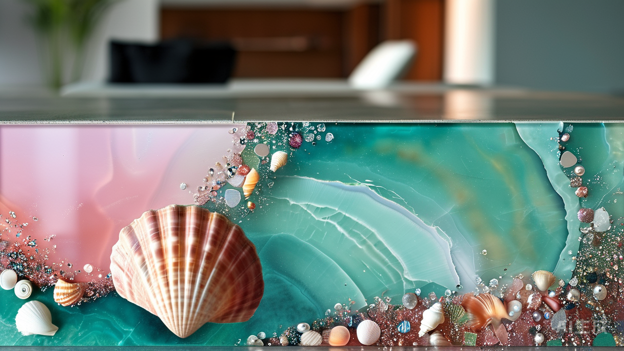 色彩的突围与颗粒的叙事 告别了过去灰扑扑的刻板印象,当代“水磨石风”瓷砖在色彩上进行了大胆突围。除了经典的黑白灰基底,柔和的粉彩、静谧的墨绿、甚至跳跃的金属色系都成为新的基底选择。其中镶嵌的“骨料”也演变得更加丰富多元:大小不一的彩色玻璃颗粒、具有光泽感的贝壳碎片、或是低调的金属片,共同编织出充满细节与故事感的表面肌理。这使得每一片瓷砖都如同一幅微缩的抽象画,为空间注入个性化的艺术灵魂。